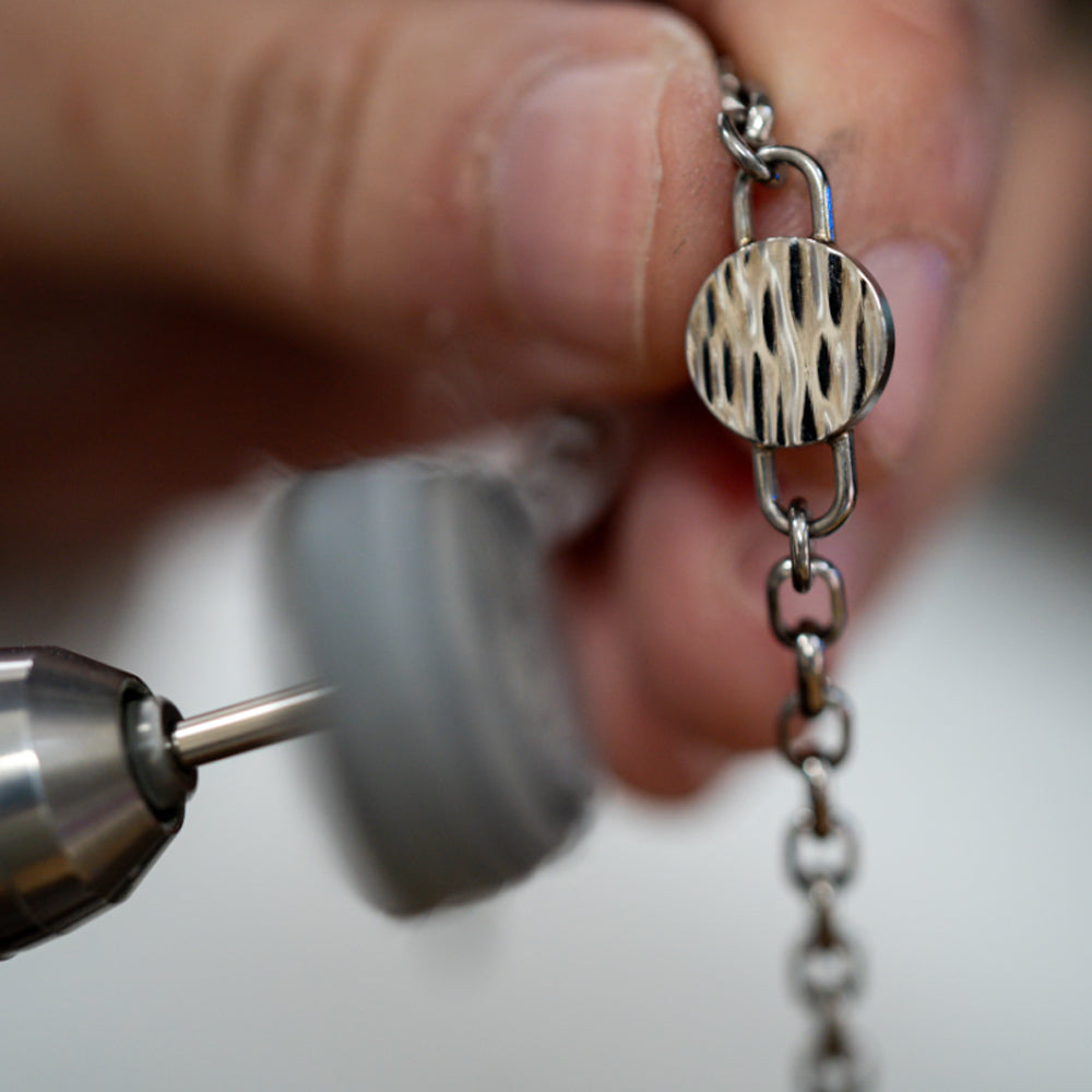 使用するチタン素材は、錆びにくくて汗にも強いという特徴加え、「金属アレルギー」の方でも使用できる優しい金属という特徴があります。