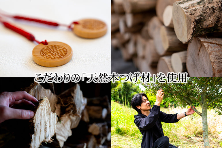 使用する本柘植(つげ)という木材は、印鑑や櫛、将棋の素材として長らく愛されてきました。その中でも私たちが使用する本つげは、4代目と5代目が直接 鹿児島県まで足を運んで見つけたこだわりの逸品。年に1度、現地に足を運んで植林も行っています。